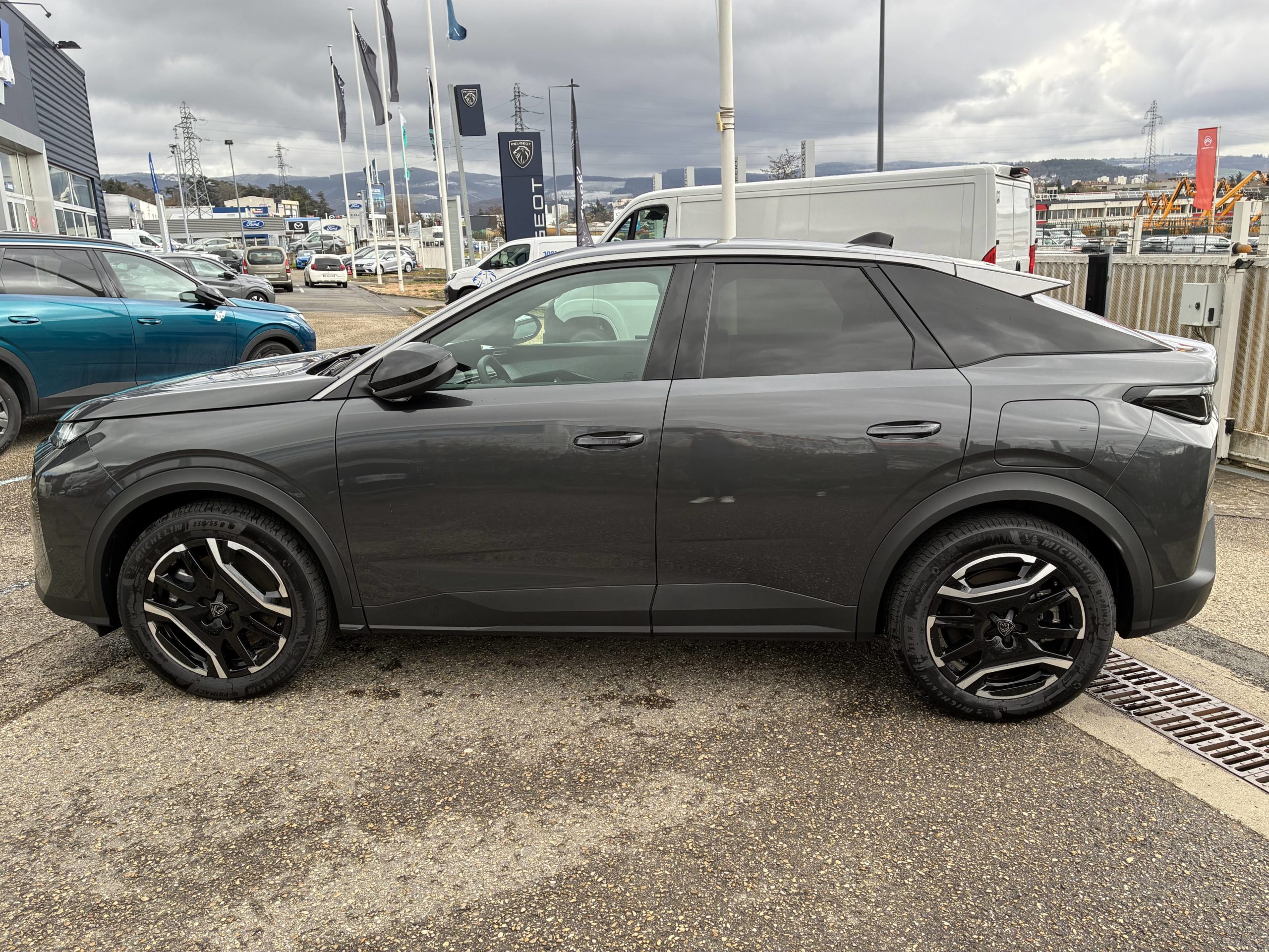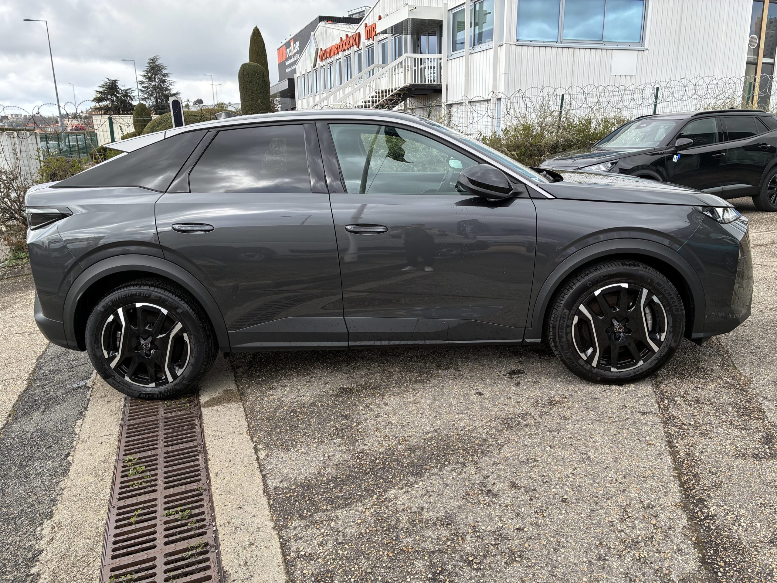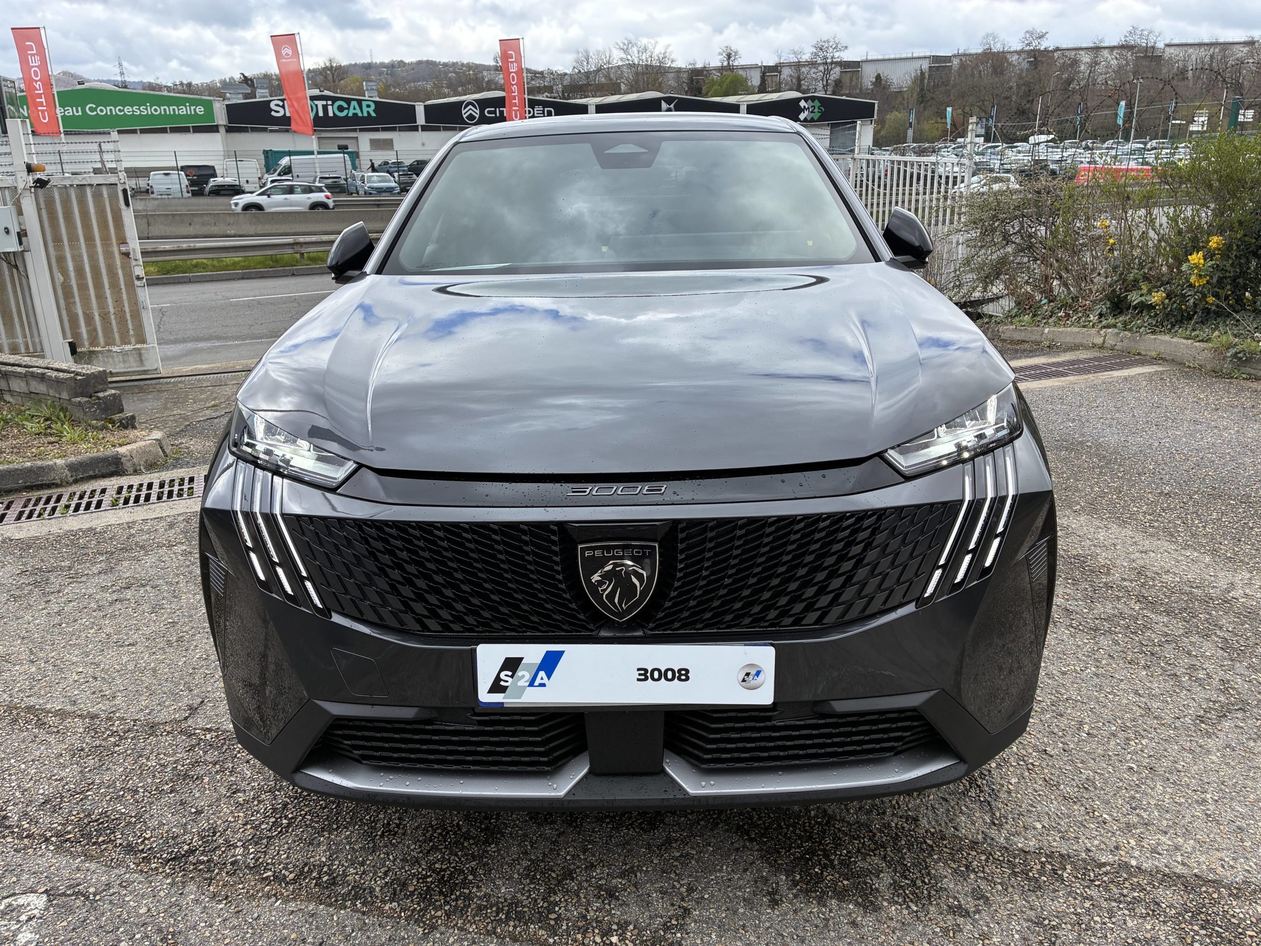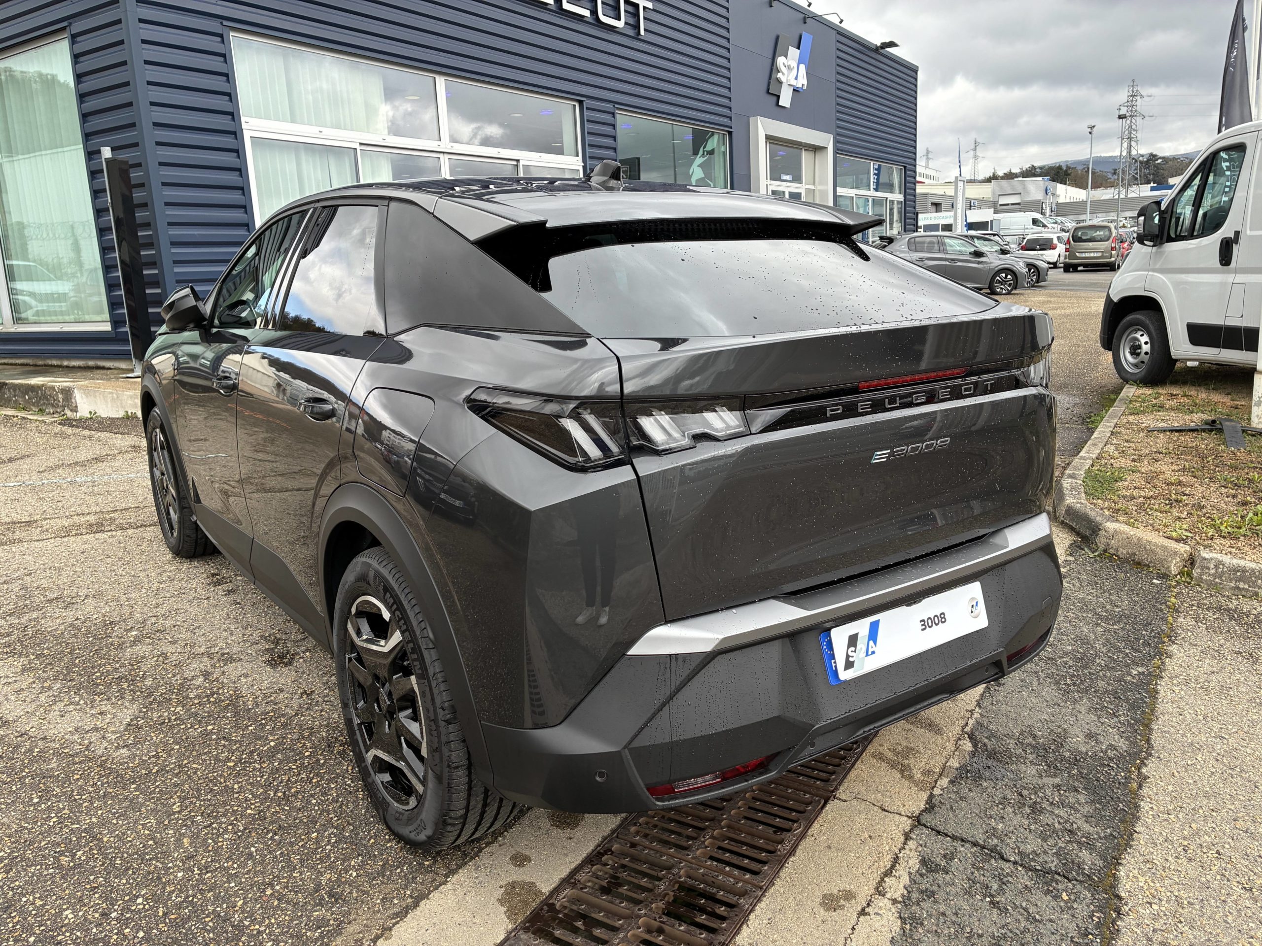 - Eléments de style éxterieur Bandeau entre les projecteurs Noir laqué avec logo 3008. Calandre couleur caisse, écopes latérales Noir laqué, décor inférieur Gris Meteor, jupe inférieure Noir grainé. Vitres AR, vitres de custode et lunette AR surteintées. Lécheurs de vitres masqués. Enjoliveurs de passages de roues et protections inférieures de portes Noir grainé. Bandeau entre les feux AR Noir laqué avec lettrage PEUGEOT. Pare chocs AR avec décor Gris Meteor et jupe inférieure Noir grainé, Monogrammes AV et AR