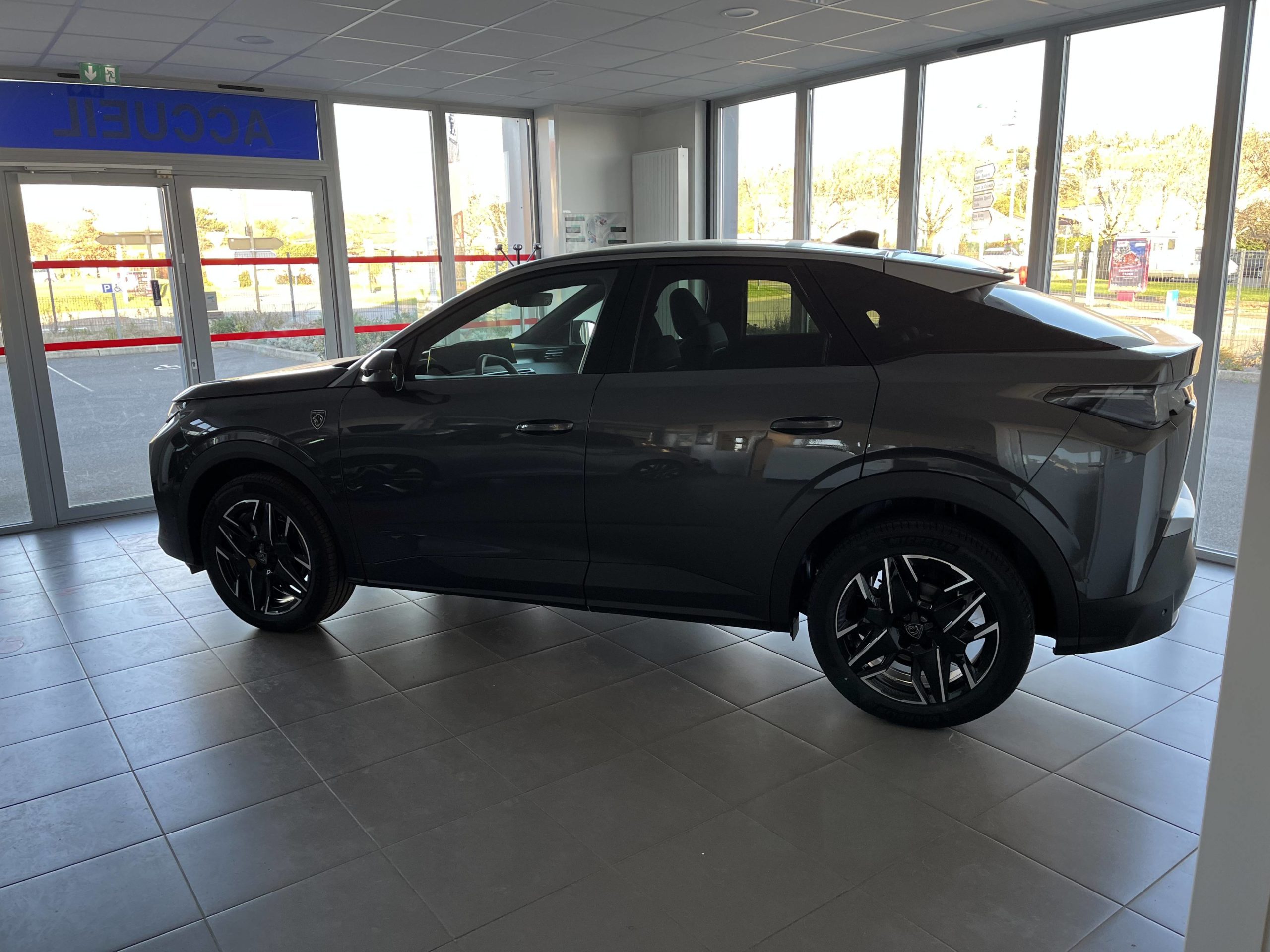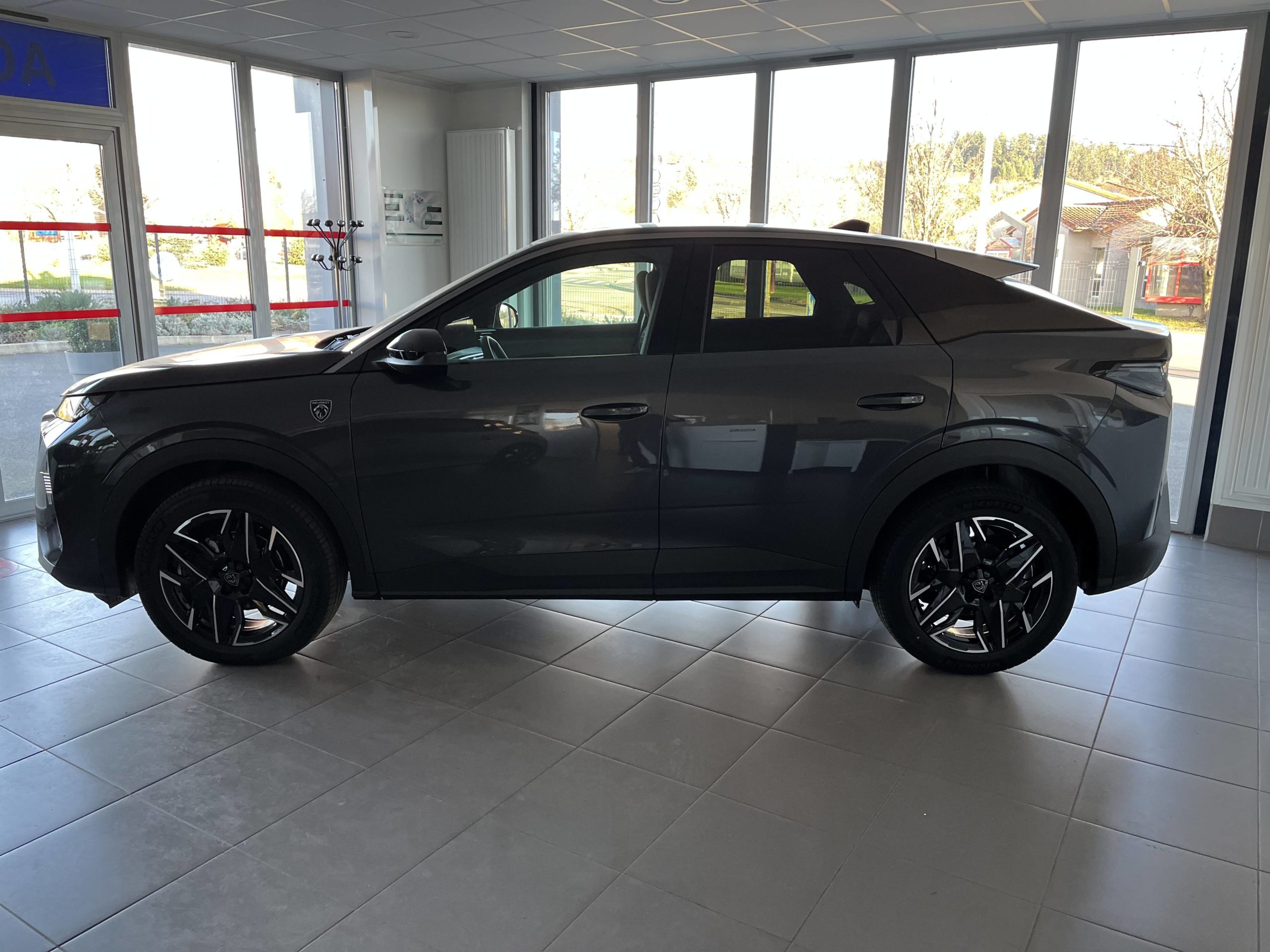 - Eléments de style éxterieur Bandeau entre les projecteurs Noir laqué avec logo 3008. Calandre couleur caisse, écopes latérales Noir laqué, décor inférieur Gris Meteor, jupe inférieure Noir grainé. Vitres AR, vitres de custode et lunette AR surteintées. Lécheurs de vitres masqués. Enjoliveurs de passages de roues et protections inférieures de portes Noir grainé. Bandeau entre les feux AR Noir laqué avec lettrage PEUGEOT. Pare chocs AR avec décor Gris Meteor et jupe inférieure Noir grainé, Monogrammes AV et AR