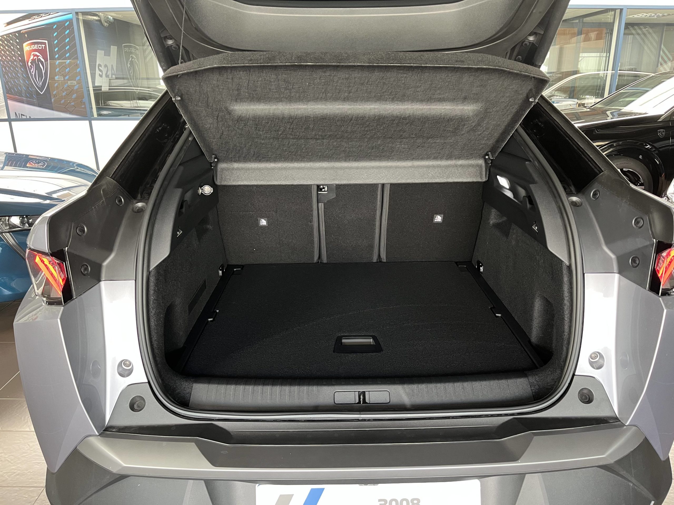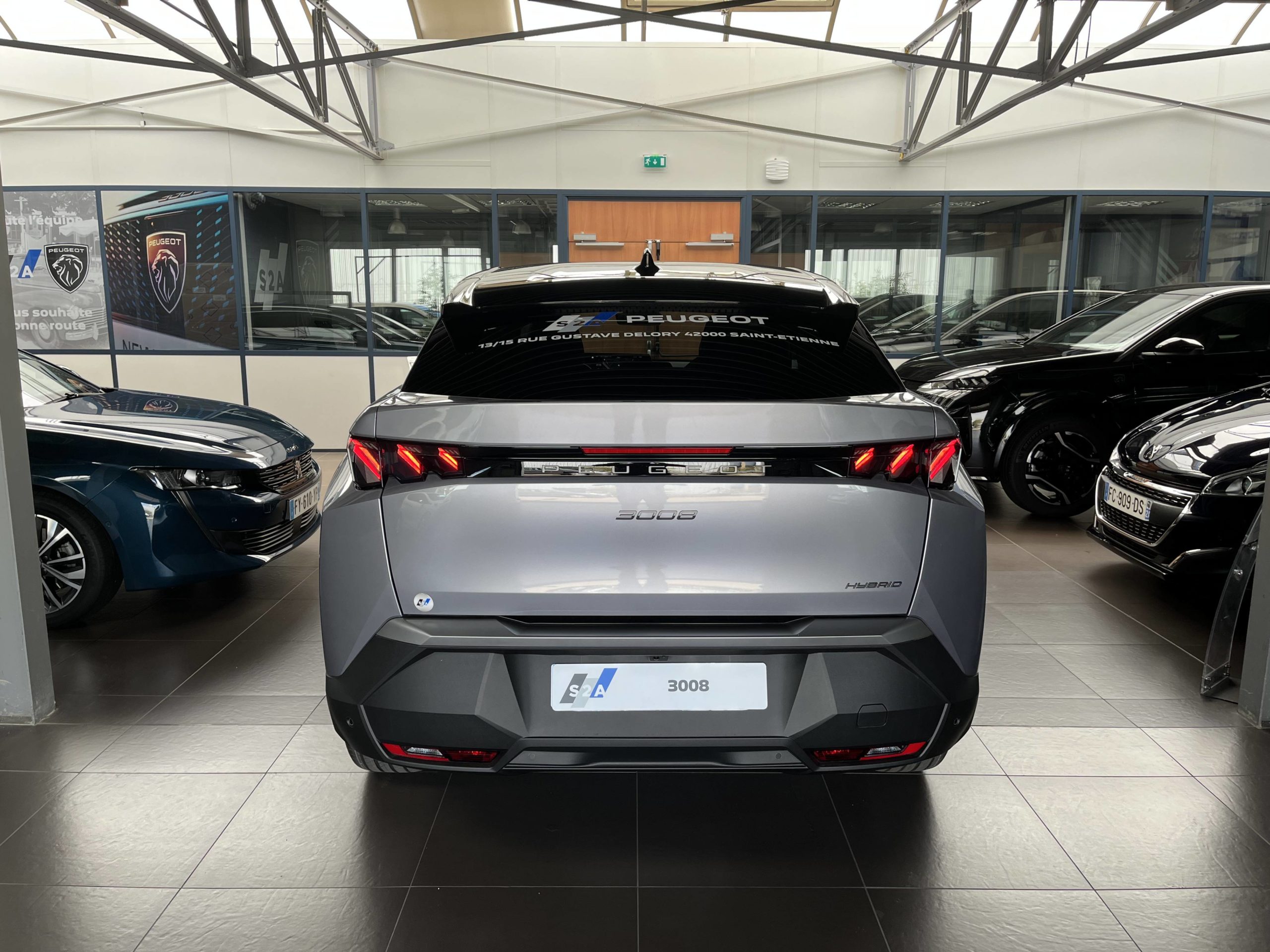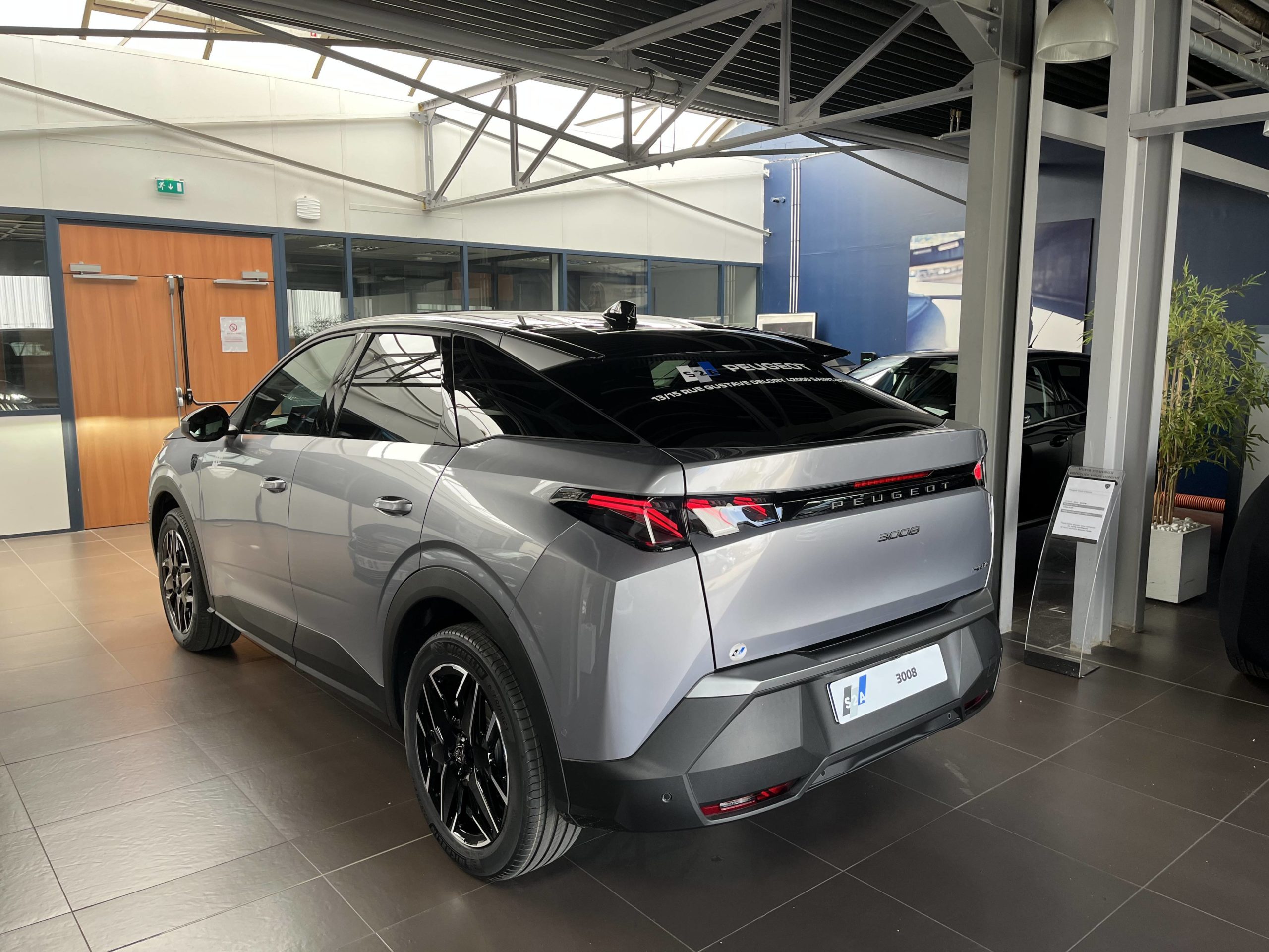 - Eléments de style éxterieur Bandeau entre les projecteurs Noir laqué avec logo 3008. Calandre couleur caisse, écopes latérales Noir laqué, décor inférieur Gris Meteor, jupe inférieure Noir grainé. Vitres AR, vitres de custode et lunette AR surteintées. Lécheurs de vitres masqués. Enjoliveurs de passages de roues et protections inférieures de portes Noir grainé. Bandeau entre les feux AR Noir laqué avec lettrage PEUGEOT. Pare chocs AR avec décor Gris Meteor et jupe inférieure Noir grainé, Monogrammes AV et AR
